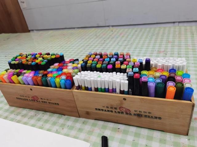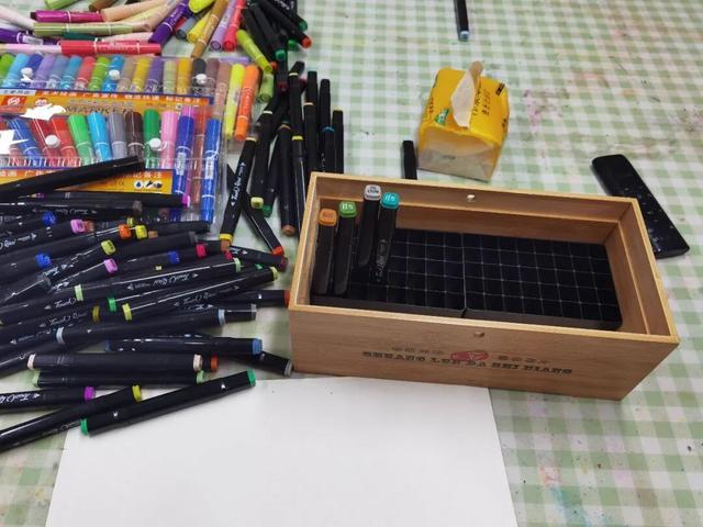 或者将笔架放进盒子里,专门收纳马克笔,取用一目了然,而且不容易乱。(贵的马克笔需要平放)