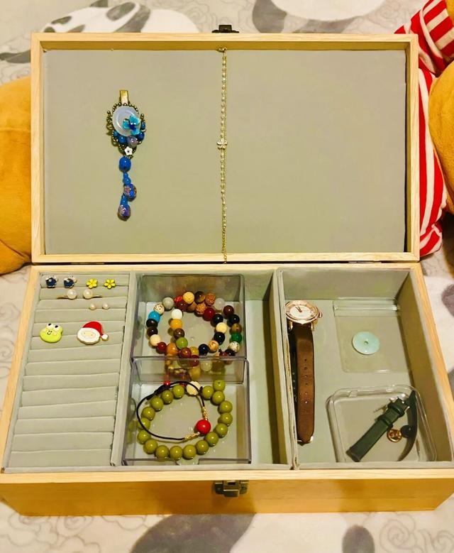 另外,你也可以发挥想象用卷纸筒+自粘绒布自制一个收纳盒,不仅收纳力强大,还比新买的首饰盒要好看。