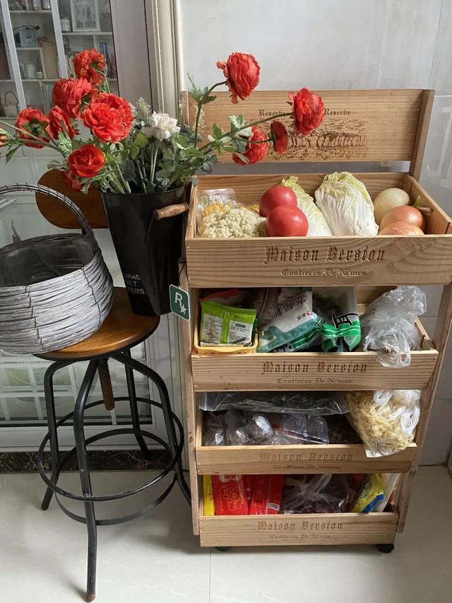 平时放在厨房收纳蔬菜、调料,或者放到客厅里收纳零食、杂物,都特别好用,一点也不比成品小推车差。
